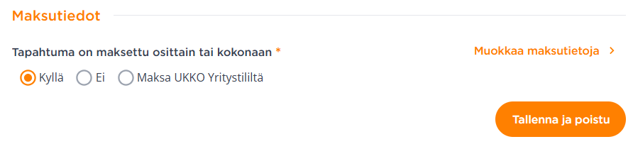 Klikkaa "Kyllä" -valintaa ja sen jälkeen "Muokkaa maksutietoja" tai "Tallenna ja poistu".